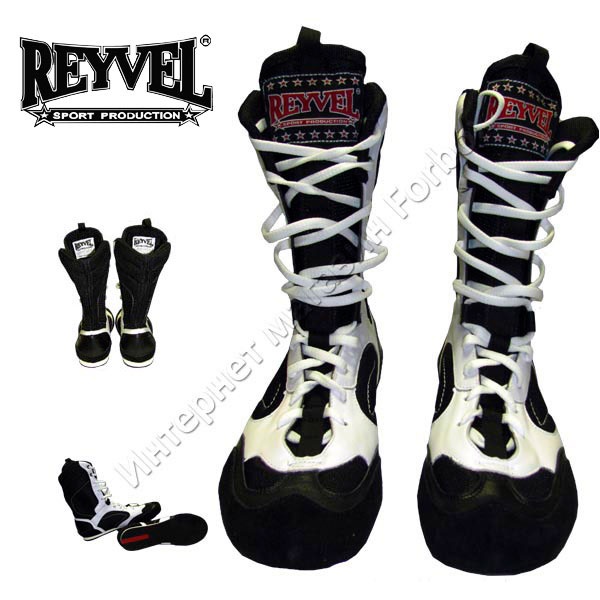 Боксерки торговой марки REYVEL изготавливаются из комбинированных материалов – кожа, замша, ткань. Боксерки REYVEL изготавливаются из натуральных материалов – натуральная кожа, замш высокого качества. Имеют уникальную специально разработанную подошву из материала RB. Используются боксерки высокие торговой марки REYVEL спортсменами для проведения спаррингов и тренировочных боев на специально предназначенной поверхности – боксерский ринг, специальные маты и т.д.
