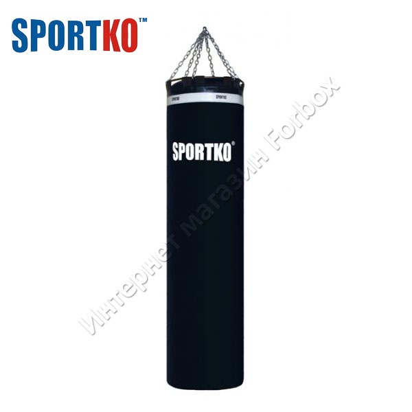 Материал ПВХ, набивка резиновая крошка + тырса. В середине мешка находиться стержень с песком. Размеры: высота 150см, диаметр 45см. Вес 65 кг. В верхней части мешка закрепленно стальное кольцо, которое предназначено для крепления цепей или пружин. Цепи входят в комплект (6 лучей), Внизу мешка находиться дополнительное кольцо для фиксирования мешка к полу