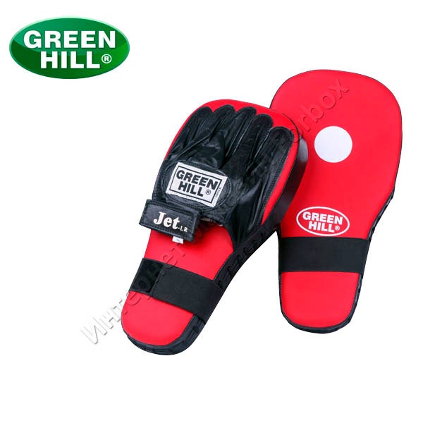 Лапы модели Jet торговой марки Green Hill изготавливаются из высококачественной кожи. На лицевой поверхности наносится логотип торговой марки Green Hill, а также специальный круг белого цвета. Круг позволяет легче ориентироваться в точку, куда необходимо произвести удар.