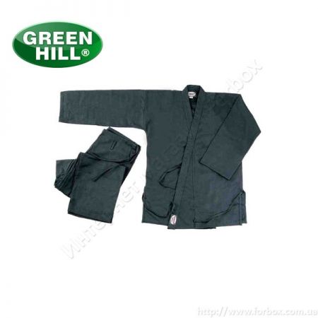 Тренировочное кимоно для карате черного цвета. Материал - 100% хлопок. Плотность ткани составляет 350 мг на сантиметр квадратный. Изготавливается в размерах от 150 до 180 см с шагом в 10 см.