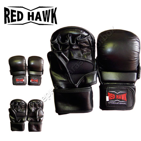 Рукопашные перчатки торговой марки Red Hawk изготовлены из кожи, наполнителем выступает специальный многослойный пенополиуретан. Перчатки хорошо прошиты, отлично защищают кулак спортсмена от повреждений, хорошо гасят удары. Рукопашные перчатки имеют дополнительную защиту на большой палец.