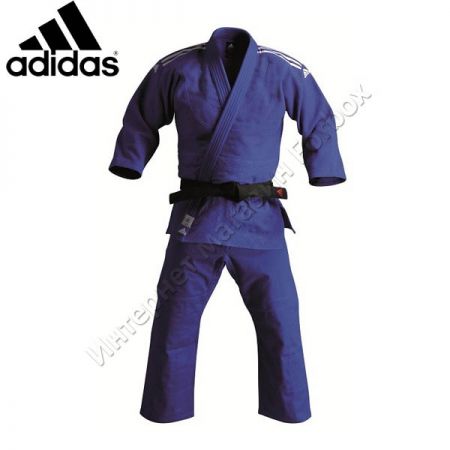 Униформа adidas для занятий Дзюдо, серии J350 (соответствует Junior) с полосами, цвет синий. Ткань: хлопок. Плотность ткани: 360г/м2 Кимоно для новичков. Брюки на резинке. Пояс в комплект не входит.