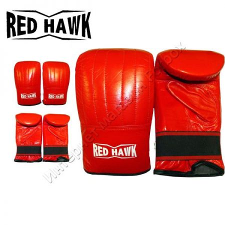 Снарядные перчатки торговой марки кожа закрытые Red Hawk изготовлены полностью из кожи. Основное функциональное назначение – работа с мешком, грушами, а также другими снарядами.