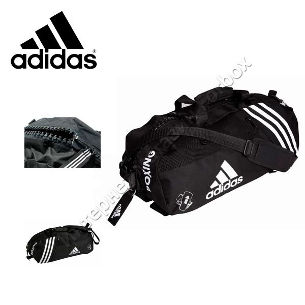 На лицевой стороне сумки-рюкзака Boxing находиться логотип торговой марки Adidas, а надпись модели Boxing находиться с торца. Так же на лицевой стороне сумки-рюкзака находиться кармашек, в который можно положить мелкогабаритные вещи.